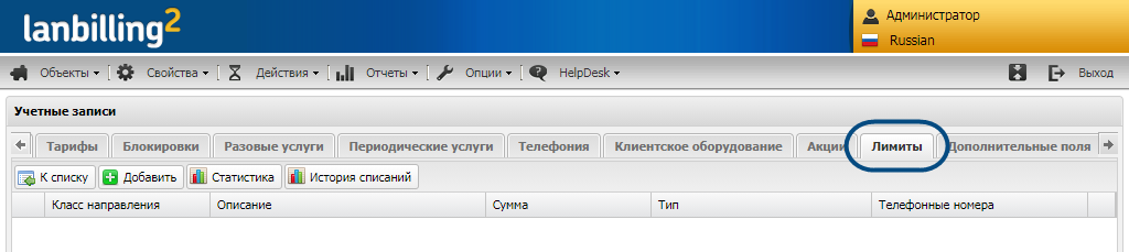 Откройте учётную запись и перейдите на вкладку «Лимиты».