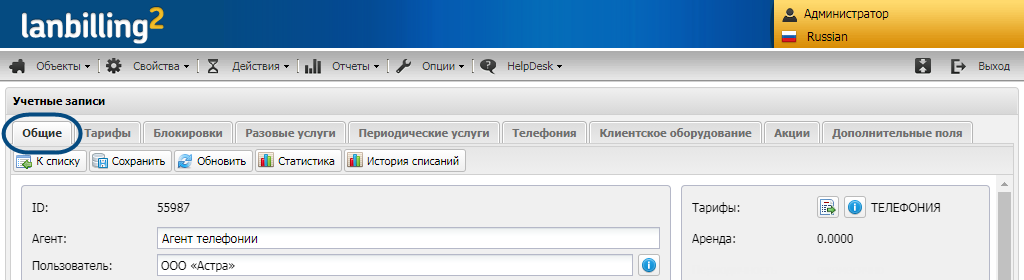 После того как вы создадите и сохраните учётную запись телефонии или IP-телефонии, в неё можно будет добавить дополнительные тарифы. Такое сочетание в АСР LANBilling называется мультитарифом.
