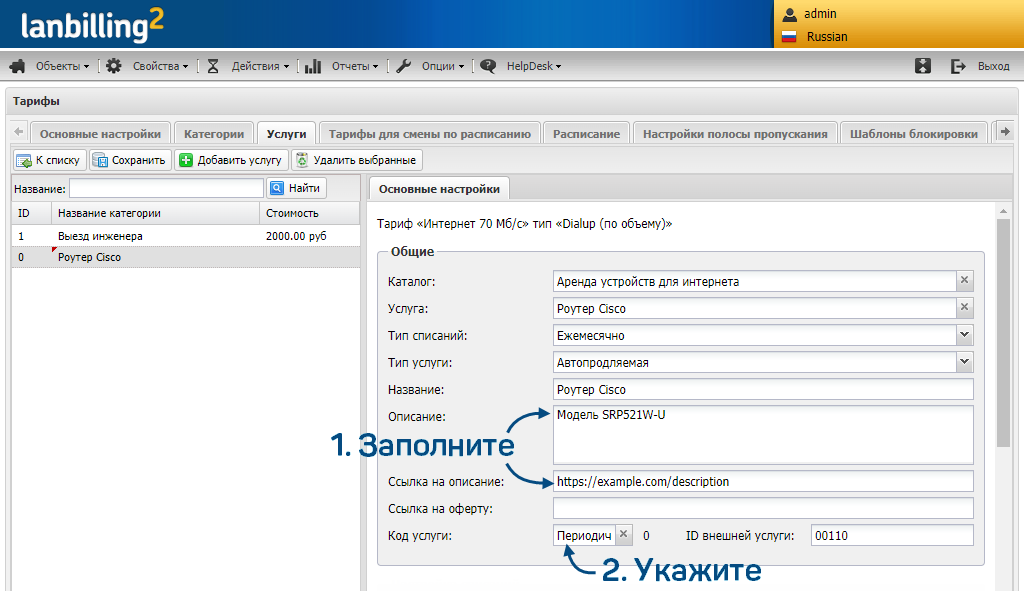 Дополнительная — если для списания будет недостаточно средств, система заблокирует только услугу. Это не повлияет на статус учётной записи и других услуг. Для услуги с типом «дополнительная» при назначении можно указать период действия.