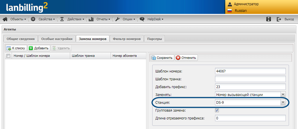 Номера в АТС не всегда соответствуют номерам, которые используются в биллинге. Например, станция поддерживает только пятизначные номера, а в АСР LANBilling нужно добавить к ним префикс.
