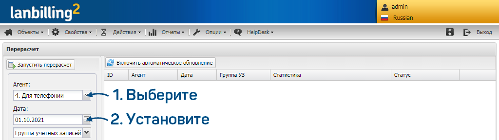 Перейдите в раздел «Действия» — «Перерасчёт».