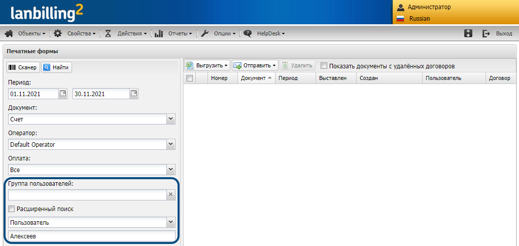 В АСР LANBilling сохраняются все созданные документы. В любой момент менеджер может посмотреть их, а также сохранить на компьютер и отправить абонентам на email.