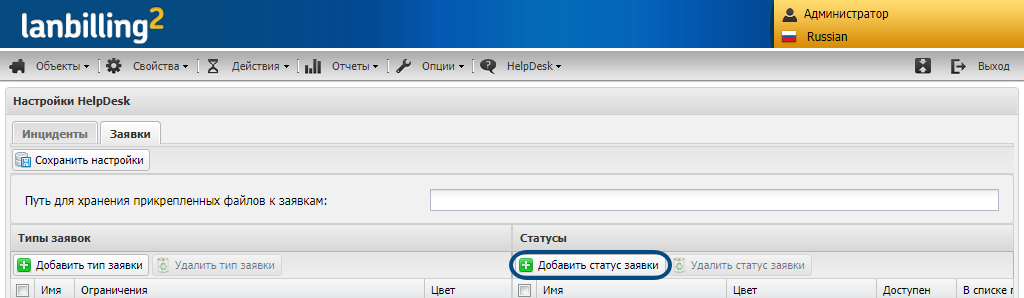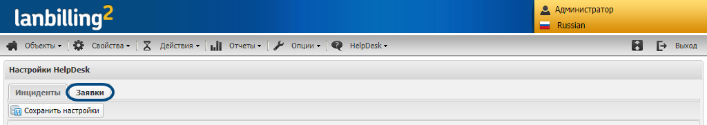 Перейдите в раздел «HelpDesk» — «Настройки».